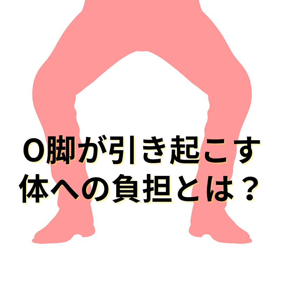 まず大きな影響を受けるのが膝の内側。O脚では体重が膝の内側に集中しやすく、関節や靭帯に負担がかかります。放っておくと、膝の痛みや変形性膝関節症の原因になることも。